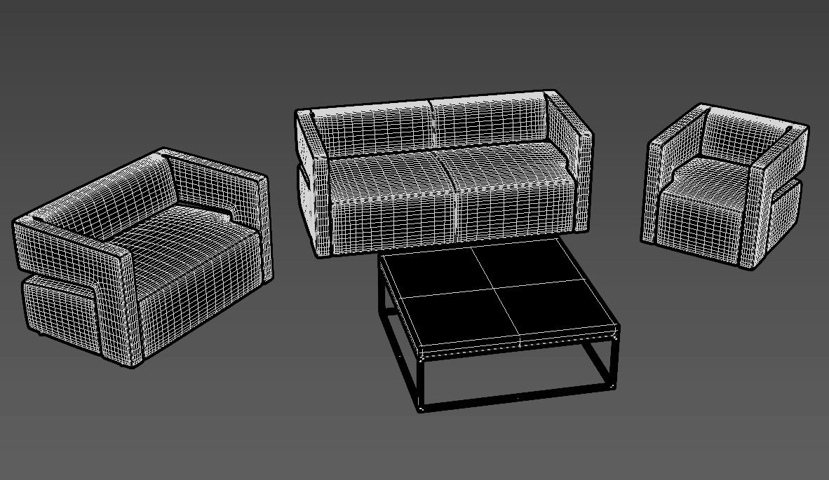 3DS MAX Sofa With Square Center Table Modeling Free Download