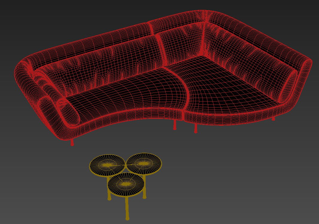 Download Stylish Couch And Round Shape Center Table 3D Model; this is the ultra-modern couch design with round shape three plate style center table, its a red velvet material used in the couch, and rendered in 3D MAX File.