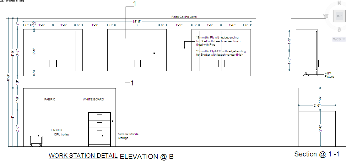 Working station detail, Elevation & section detail etc design