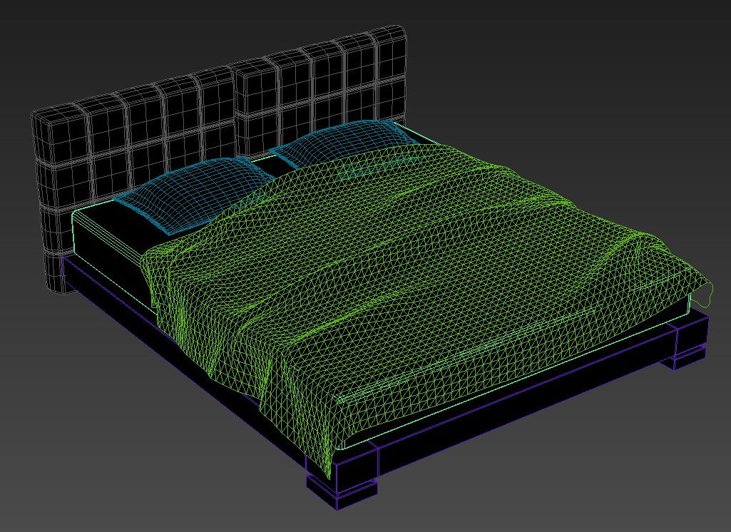 3D Soft Back Rest Double Isometric Design MAX File; download free 3d model of MAX file isometric render image shows softback rest double bed with pillow and blanket.