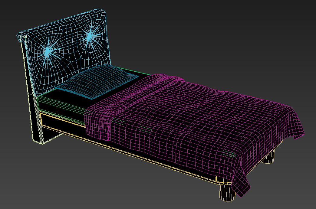 3D Single Bed Backrest Elevation Design MAX File; 3d model of single bed elevation design isometric view.