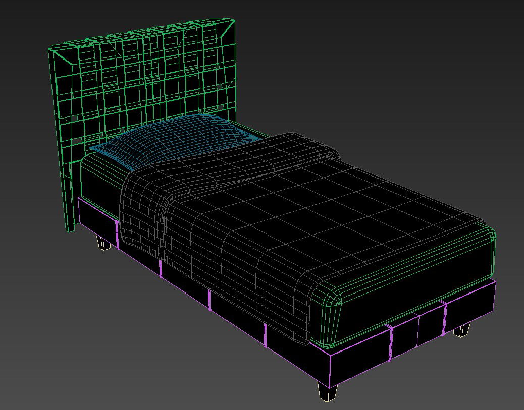 3D Model Of Single Bed Isometric Elevation Design; Download Free 3d MAX file of single bed isometric elevation design shoes 9-inch mattress, pillow and blanket.