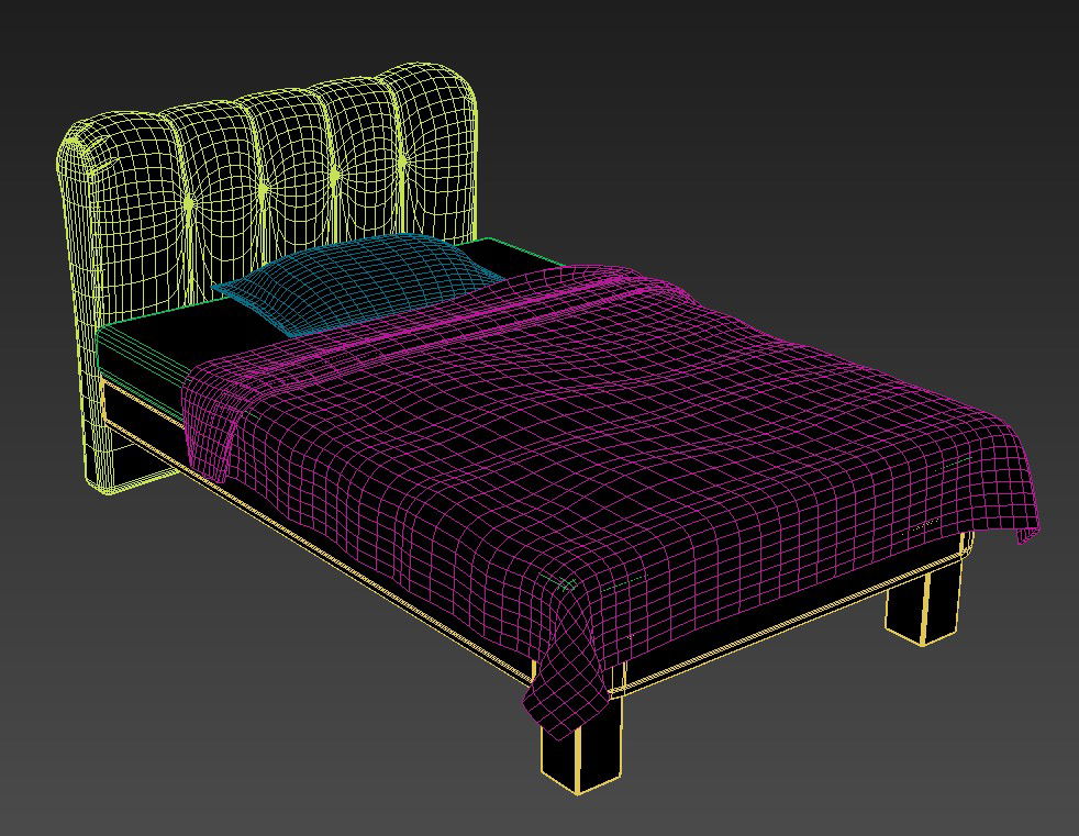 3D Single Large Bed Design MAX File; download free MAX file of single bed with backrest isometric elevation design.