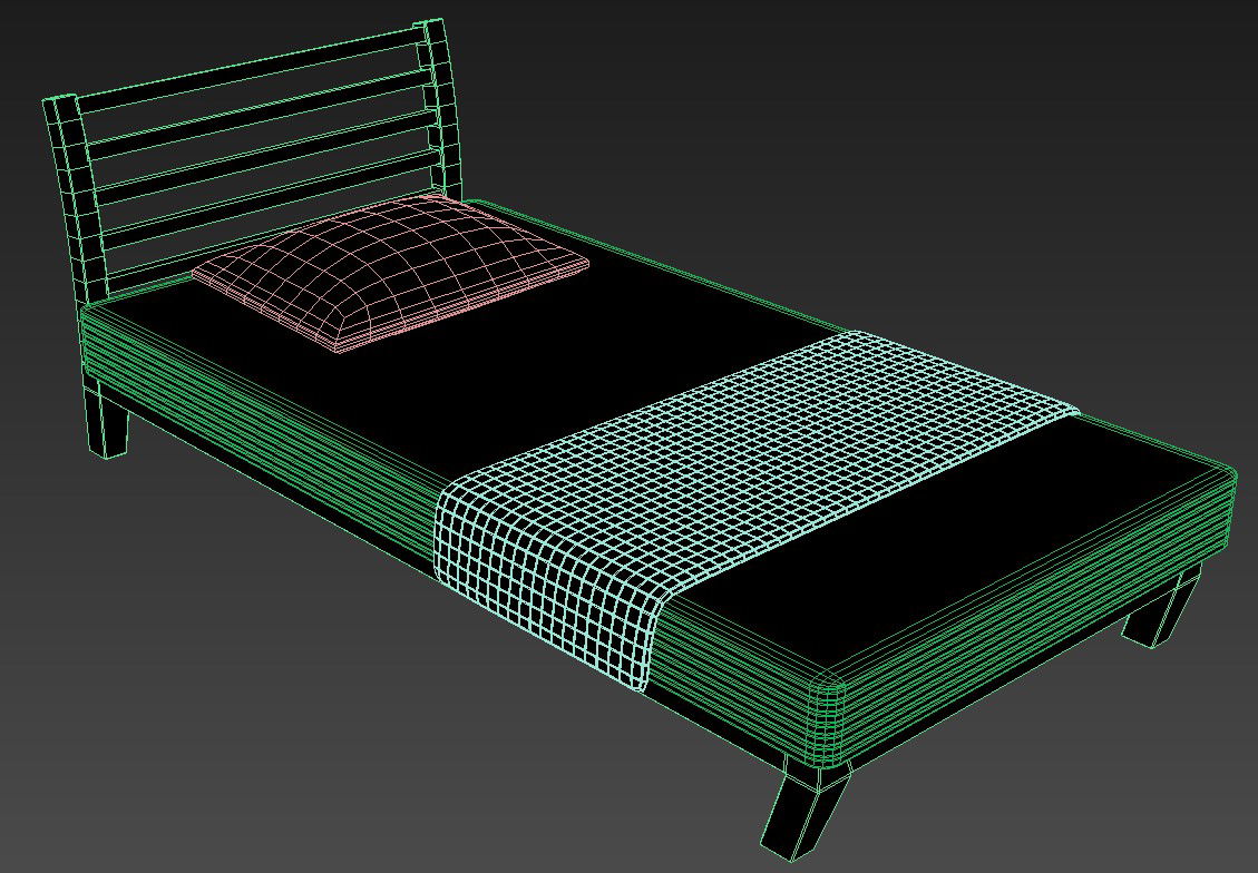 3D MAX Model Of Single Bed Design; 3d Model of wooden single bed isometric elevation design with 6 inch isometric and pillow design.
