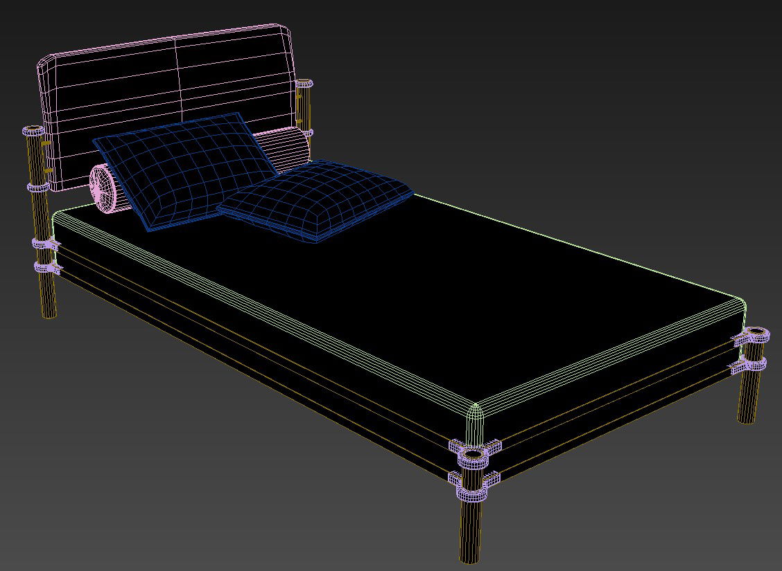 3D Mild Steel MS Single Bed Isometric Elevation Design; download free 3d model of mild steel single bed with backrest and mattress isometric elevation design.