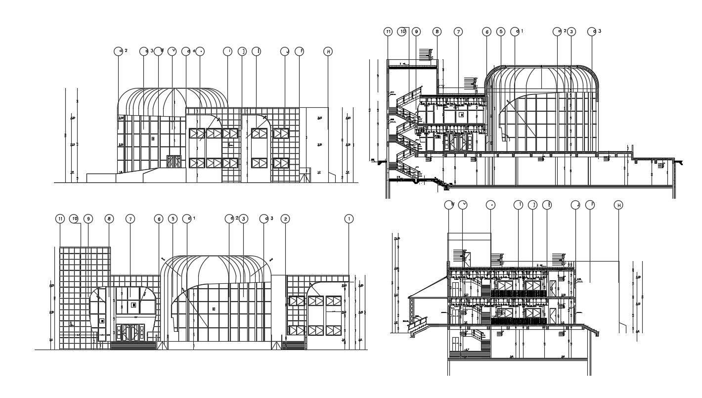2D CAD Drawing Modern Commercial Building Elevation With Section Designs AutoCAD File; this is the elevation of a commercial building with section details, working drawing dimension details, floor levels details, this is the modern architecture building, its a CAD file.