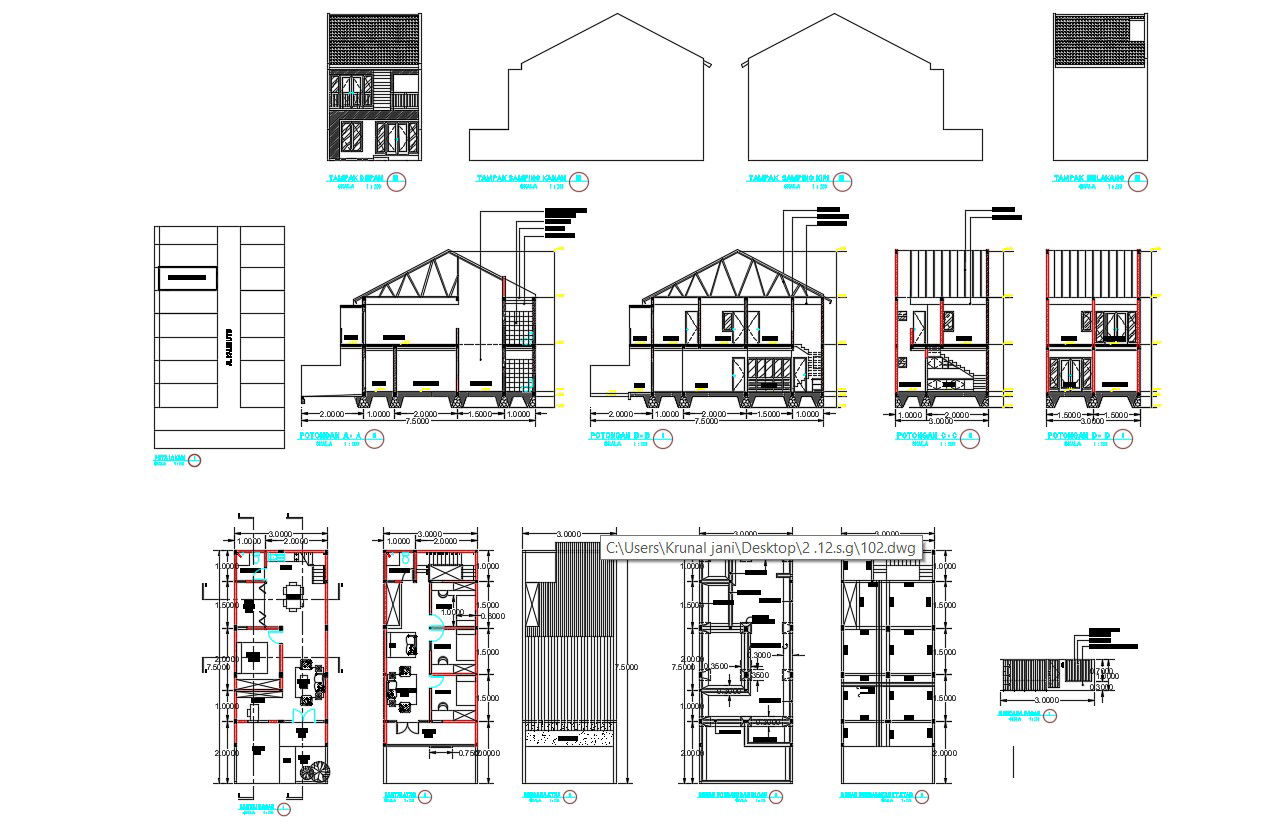 Residential Building Plans Elevation section With Dimensions And working drawing AutoCAD File; a house plan is a set of construction or working drawings that define all the construction specifications of a residential house such as the dimensions, materials, layouts, installation methods, and techniques.