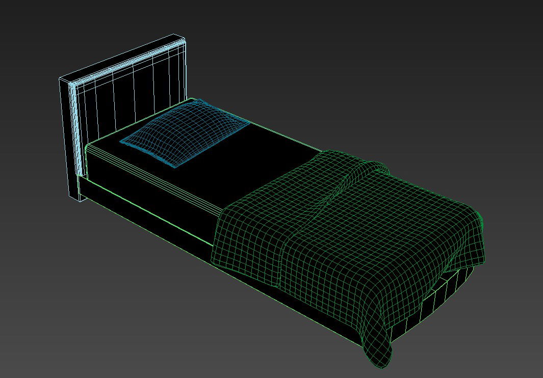 Single Bed With Backrest 3D Isometric Elevation Design; 3d model of simple wooden single bed with backrest and mattress render view download in free 3d MAX file.