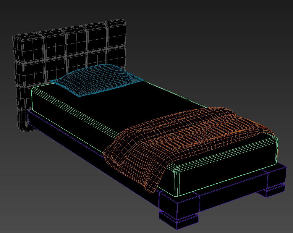 3D Comfort Single Bed MAX Blocks; download free 3d comfort single bed with soft backrest and 6-inch mattress isometric render view MAX file.