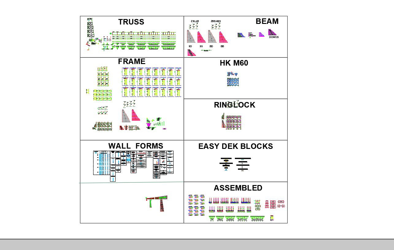 Truss Beam Frame Ringlock Easy Dekblocks And Wall Forms AutoCAD File Free Download; this is the cad drawing of beam details. truss details,ringlock details, and much more other details.