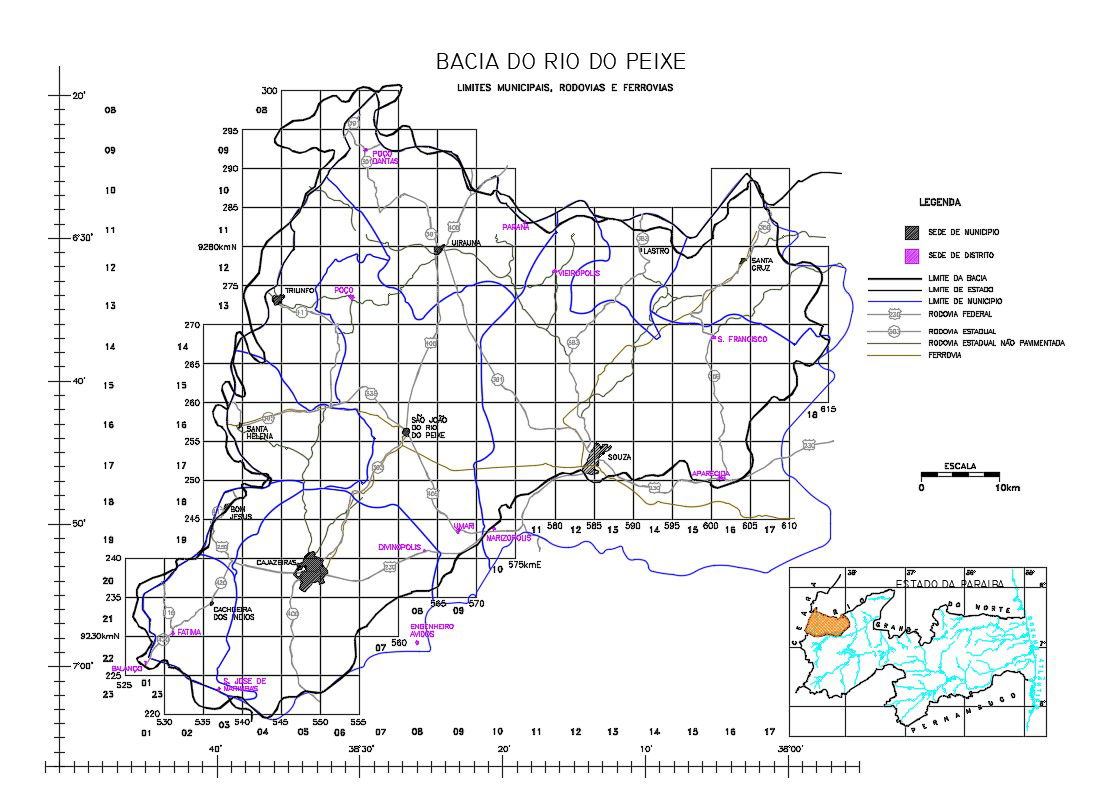 2D BACIA DO RIO DO PEIXE DWG File; download free DWG file of map drawing shows river, road, and boundary diagram.