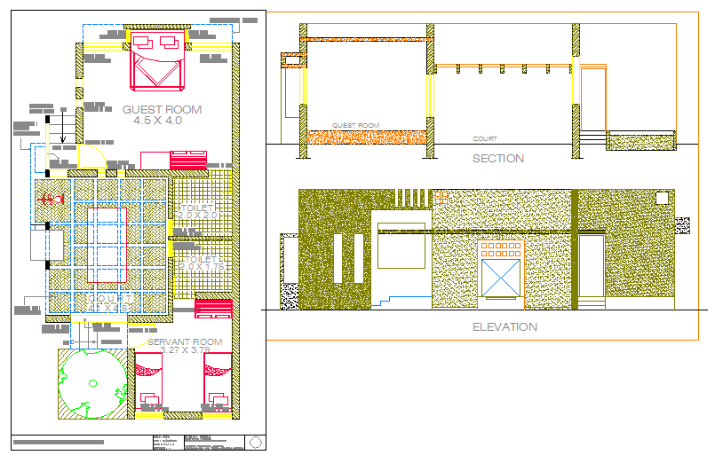 This design available in servant room with toilet, & guest room, toilet & Lay-out, elevation, Section detail.