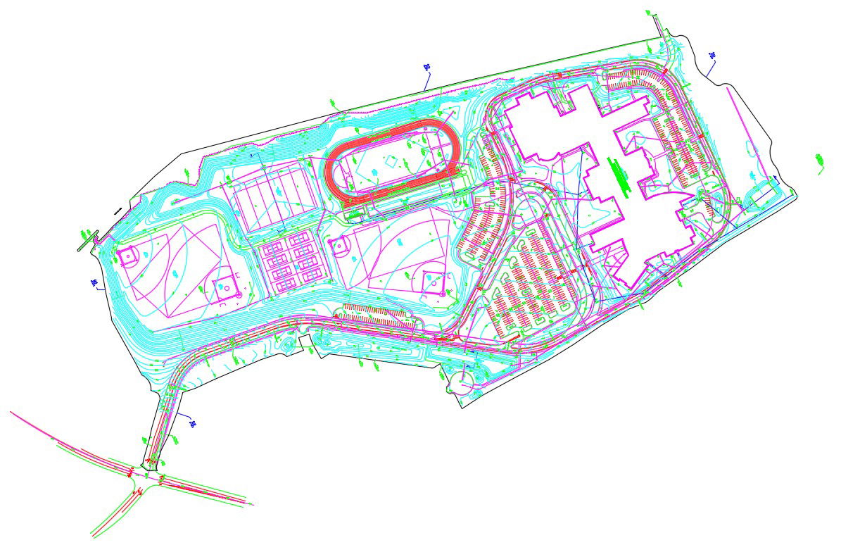 Sports Club Site Mater Plan DWG File; download free AutoCAD file of Sports Club CAD drawing shows parking lot, sports playground and Building Purpose plan with landscaping design.