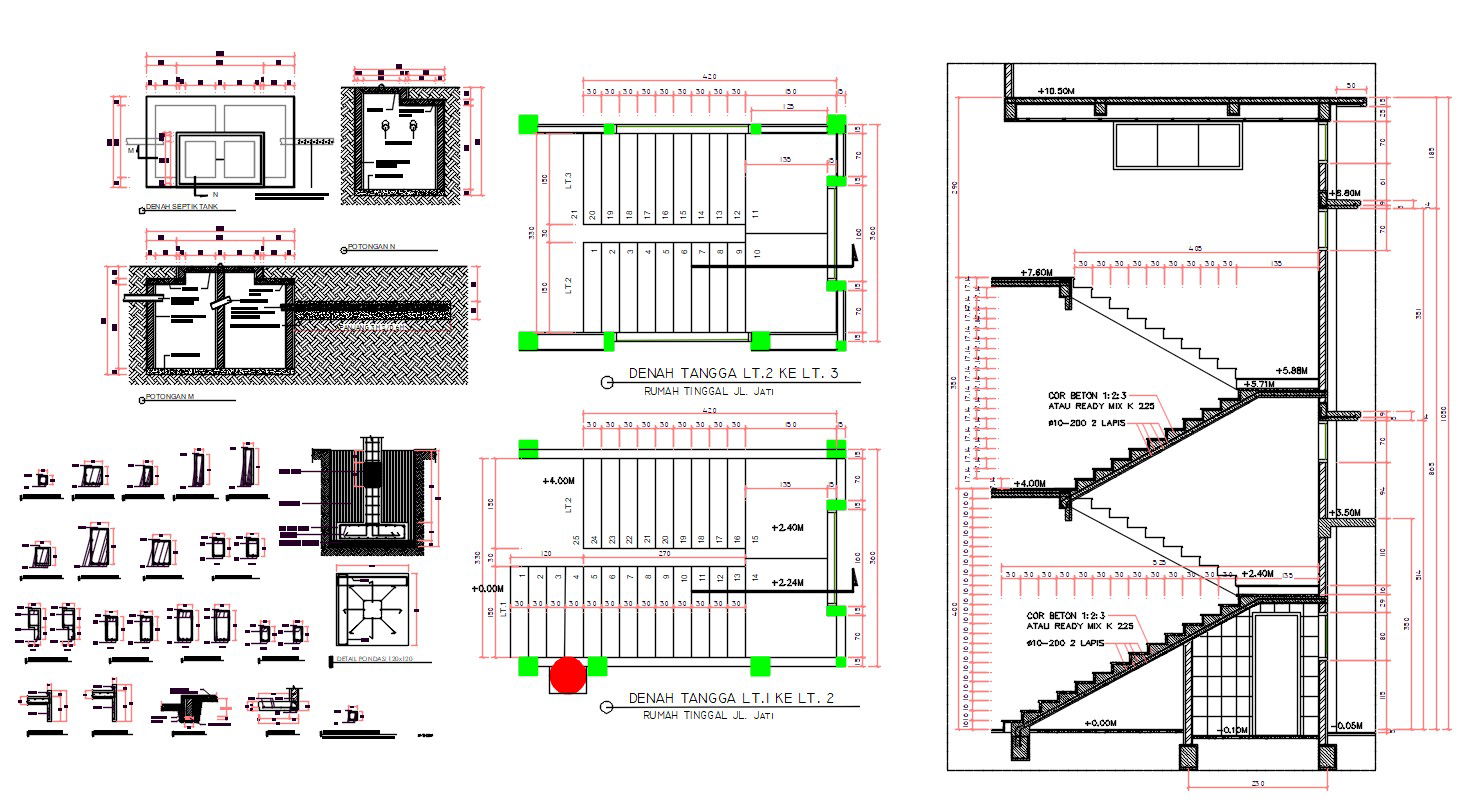 Staircase With RCC Column Footing AutoCAD File