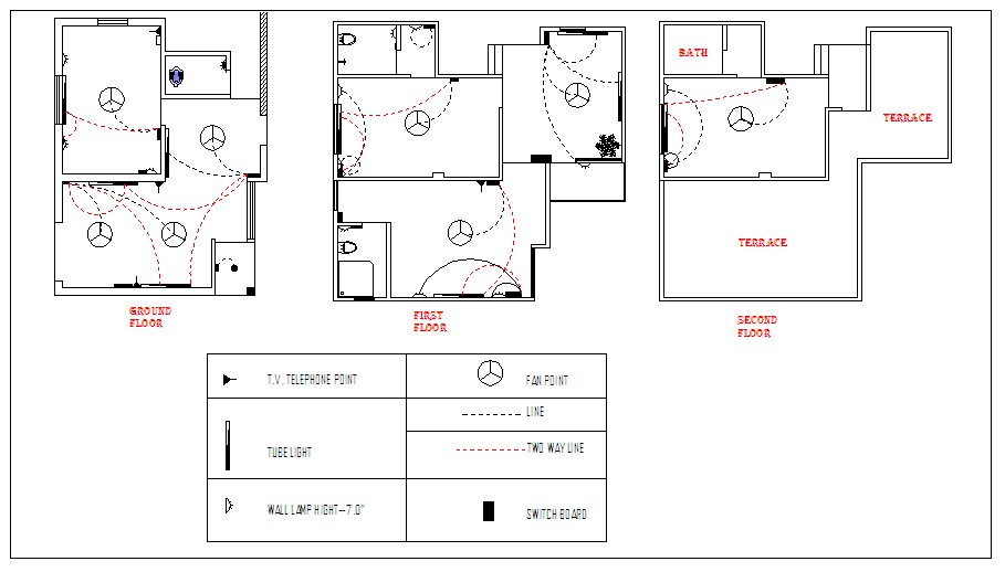 Electric Lay-out detail, T.V unit, telephone point, Tube light point, Wall light lamp, Fan point, two way line, Switch board etc detail.