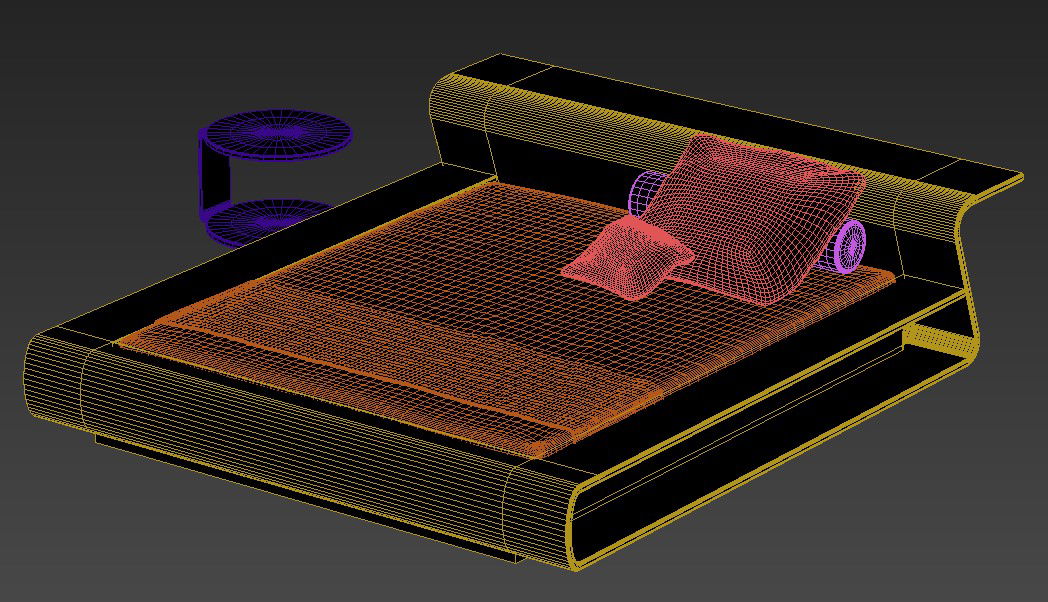 3d Model Of Low Height Bed With Backrest MAX File; download free 3d MAX file of low height double bed with mattress and cushion render elevation design.