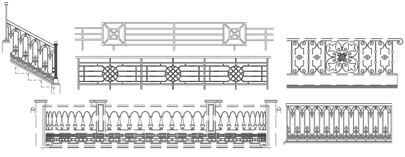 Various Types of Railing Design 2d CAD Drawing Free Download