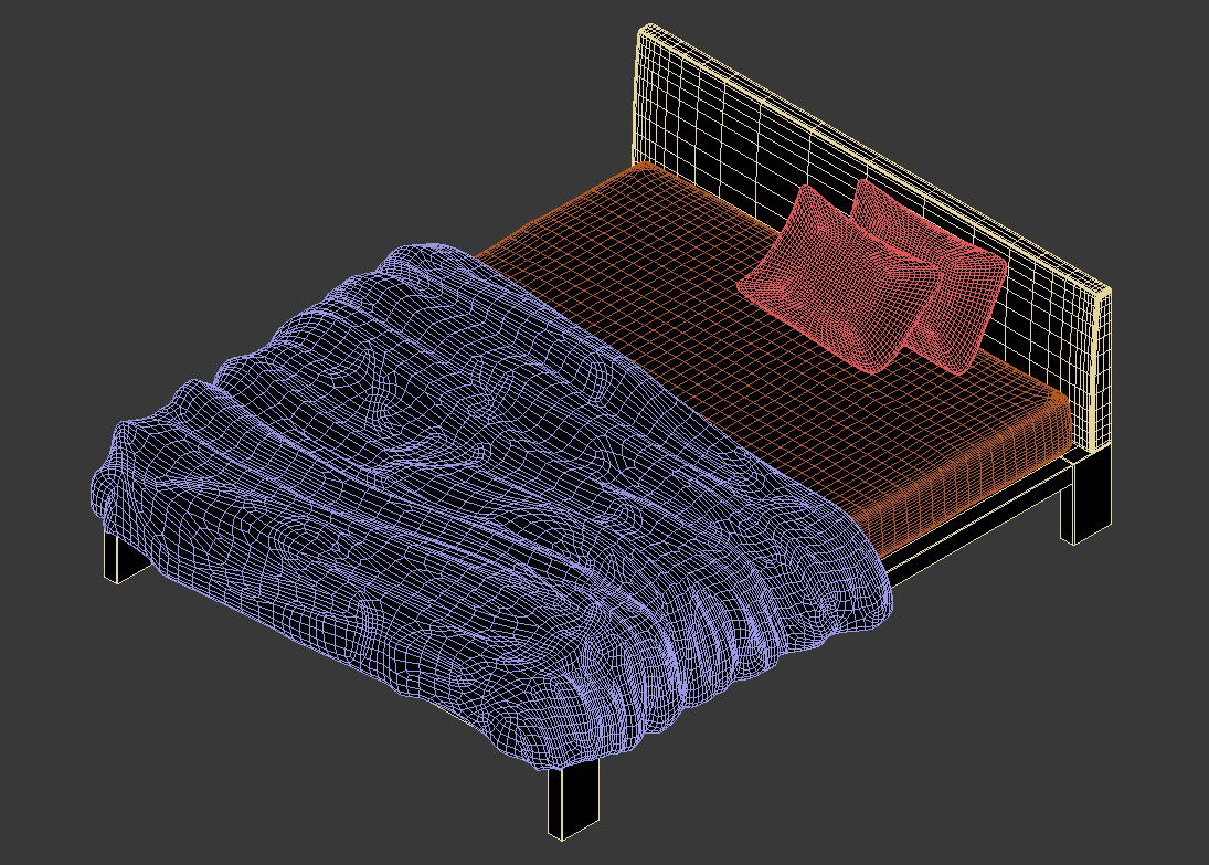 3D Wooden Double Bed With Backrest Model MAX File; download free 3d model of wooden double bed with backrest, mattress and blanket render view design.
