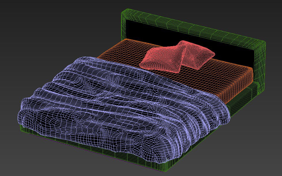 3D Low Height Queen Size Double MAX File; download free 3d model of low height queen size double bed with 6-inch mattress isometric elevation design.