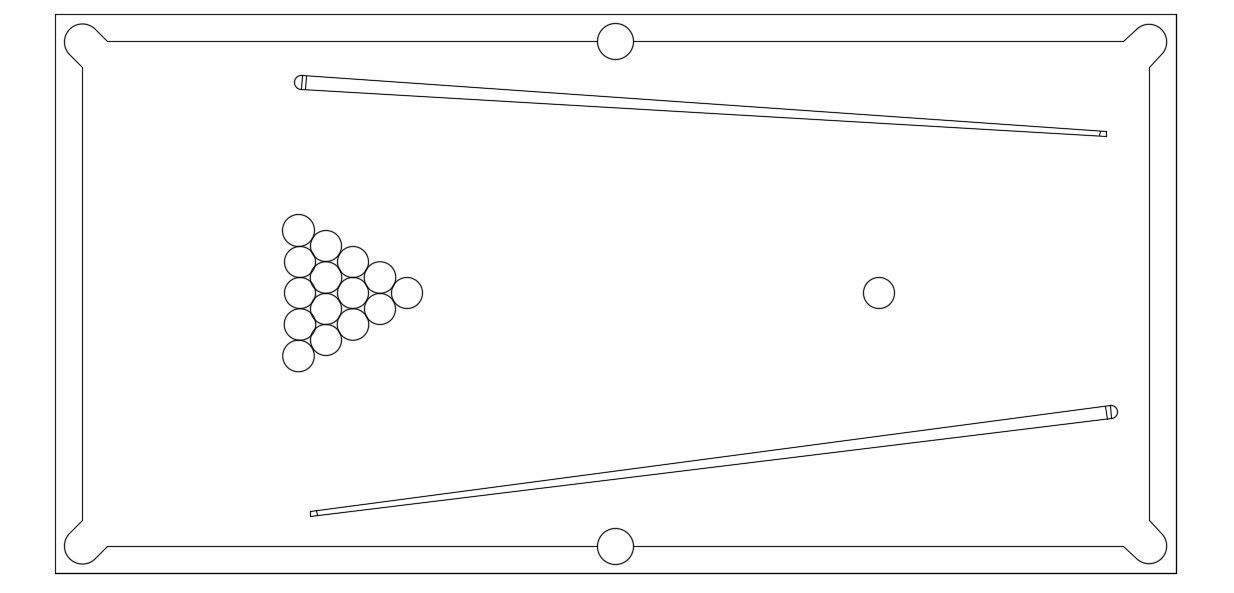 Top elevation design of pool table units that show pool balls and pool stick units details download AutoCAD Drawing for free.