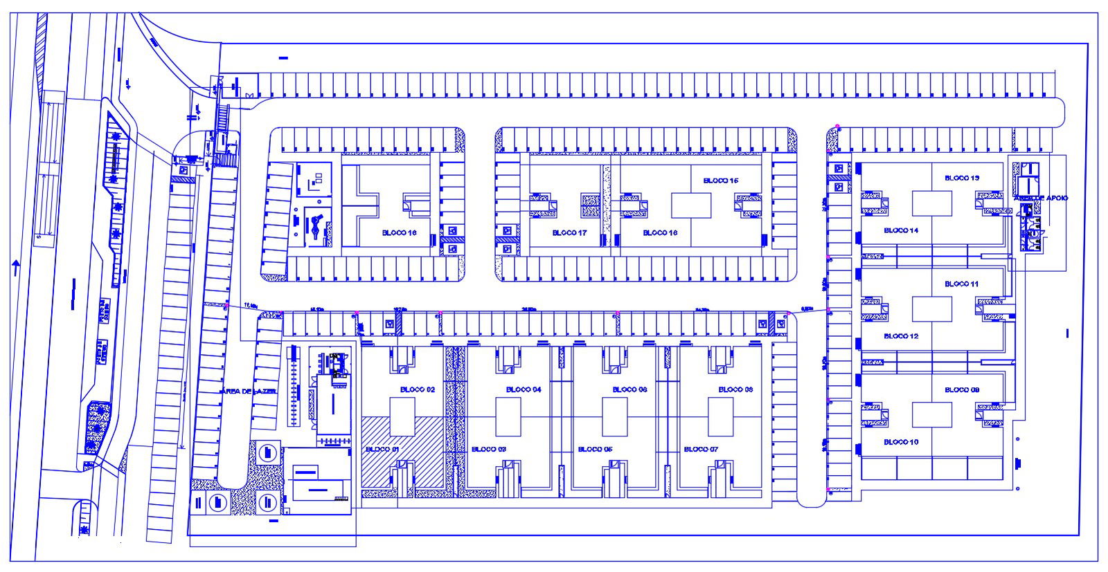Commerce Building Area Design Layout Plan With Parking Lot AutoCAD Drawing