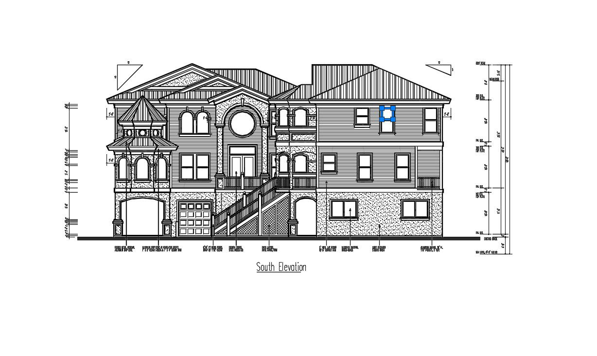 2D CAD Drawing Traditional Style Royal Elevation Of Bungalow AutoCAD File; this is the elevation of the bungalow, it's an ethnic style architecture includes floor dimension details, different style hatching related to material, designer window with peripheral cornice, main double-height entry details, wooden garage door and much more other details related to elevation, this is the DWG file format.
