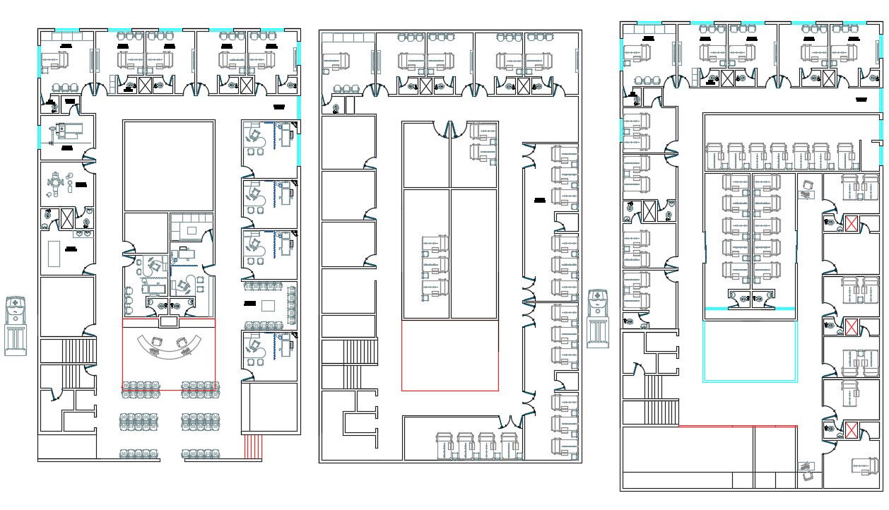 2D CAD Drawing Different Floor Plan Of Hospital With Furniture Layout AutoCAD File