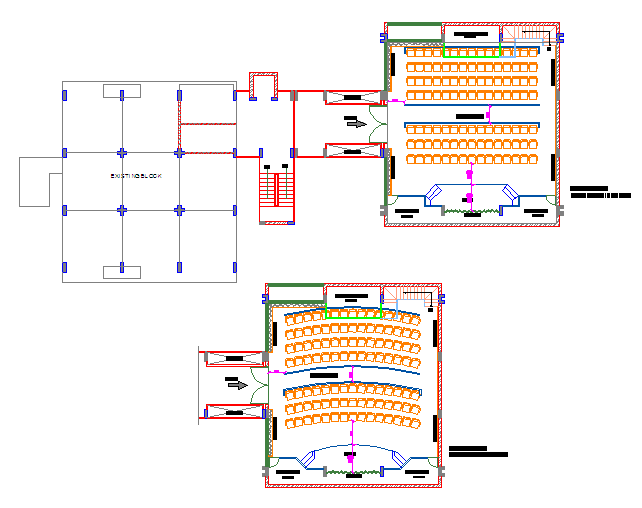 This Auditorium Design in 105 seats , Area 1685 Sq.Ft., Acoustic Paneling, Green room, Heavy Curtains, Projection room, etc detail.
