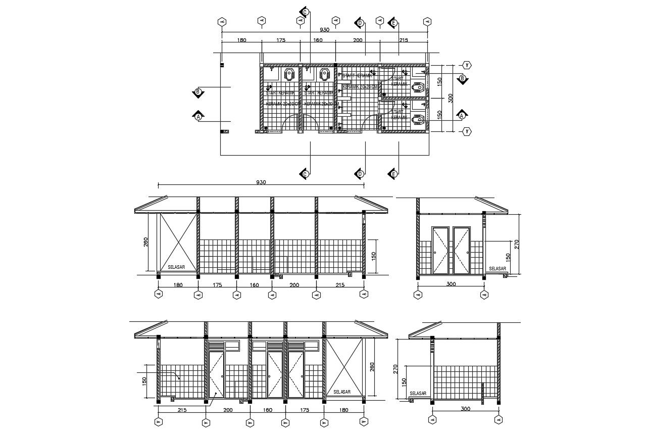 Public Toilet Plan With Working Dimensions Set 2d CAD Drawing