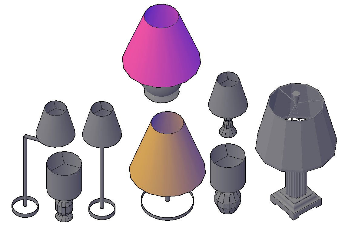 Many Types Of Table Lamps Design In 3D MAX File; this is the many table lamp design with different shapes and sizes its a basically rendered drawing in 3D MAX file format and use in 3d model file.