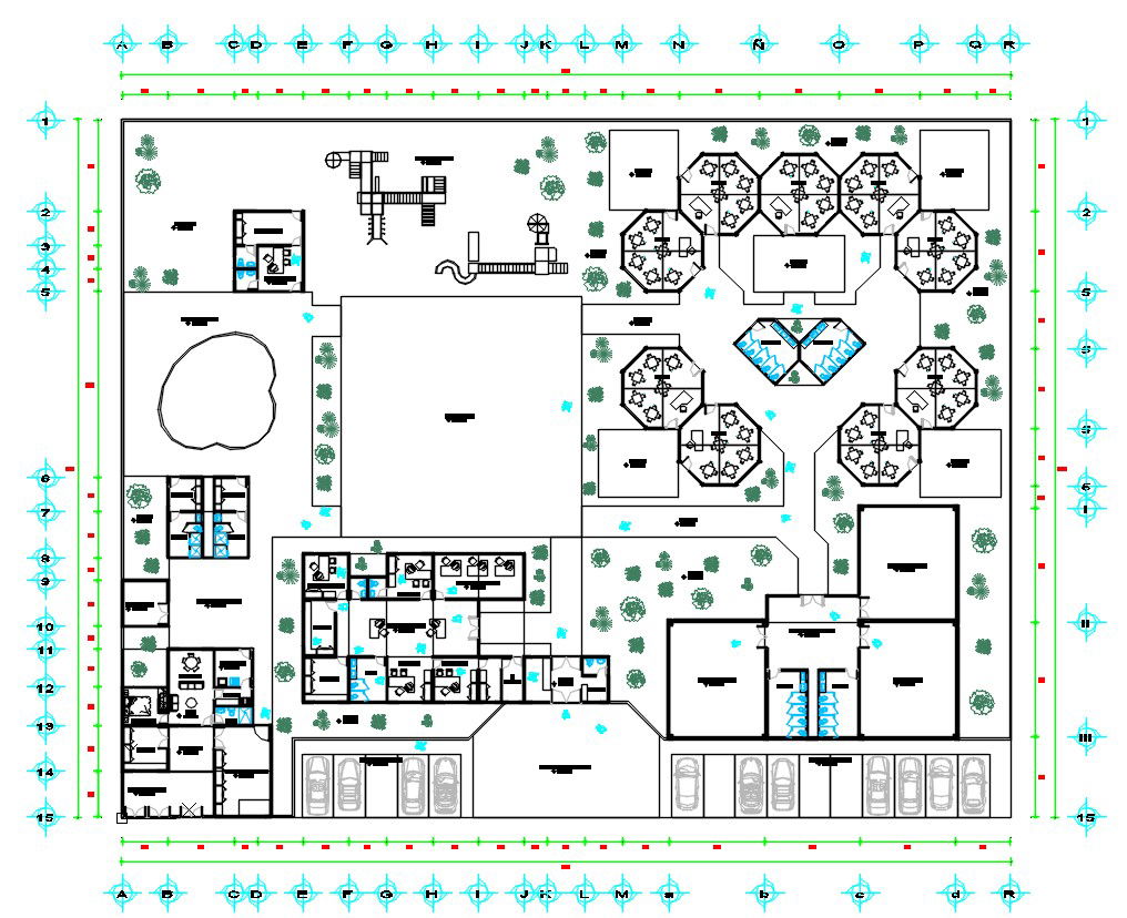 College Building Site Layout Plan With Landscaping Design AutoCAD File