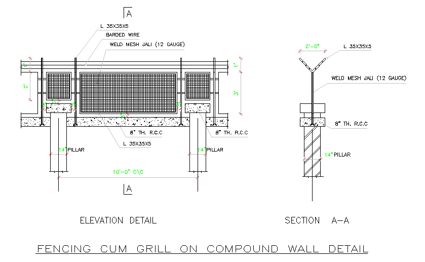 FENCING CUM GRILL ON COMPOUND WALL DETAIL, Compound Wall Detail. WELD MESH JALI (12 GAUGE).