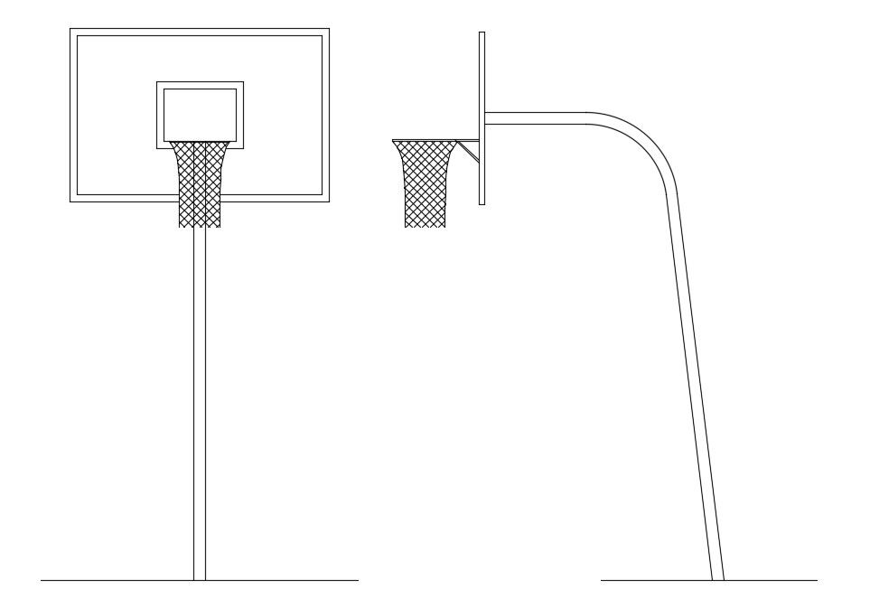 Front elevation and side elevation design of basket ball goal net units design download AutoCAD Drawing for free.