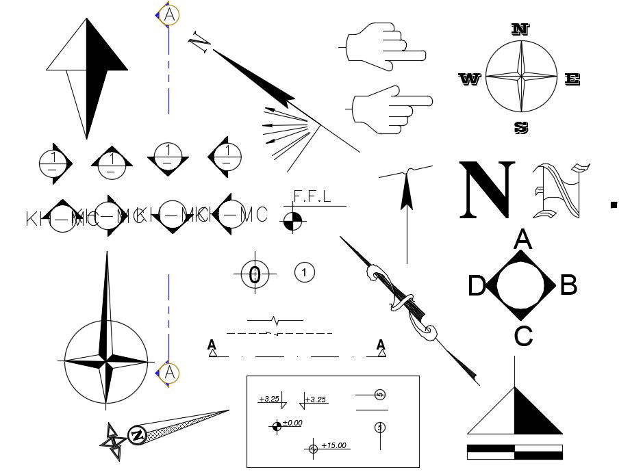 2d CAD drawing details of road directions signs design along with north direction details download AutoCAD file for free.