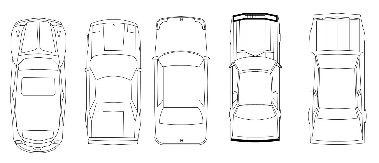 CAD drawing details of miscellaneous vehicle four-wheeler car units top elevation design AutoCAD blocks free download.