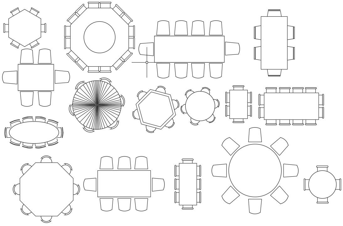 Top elevation design of miscellaneous office conference table furniture blocks AutoCAD drawing free Download.