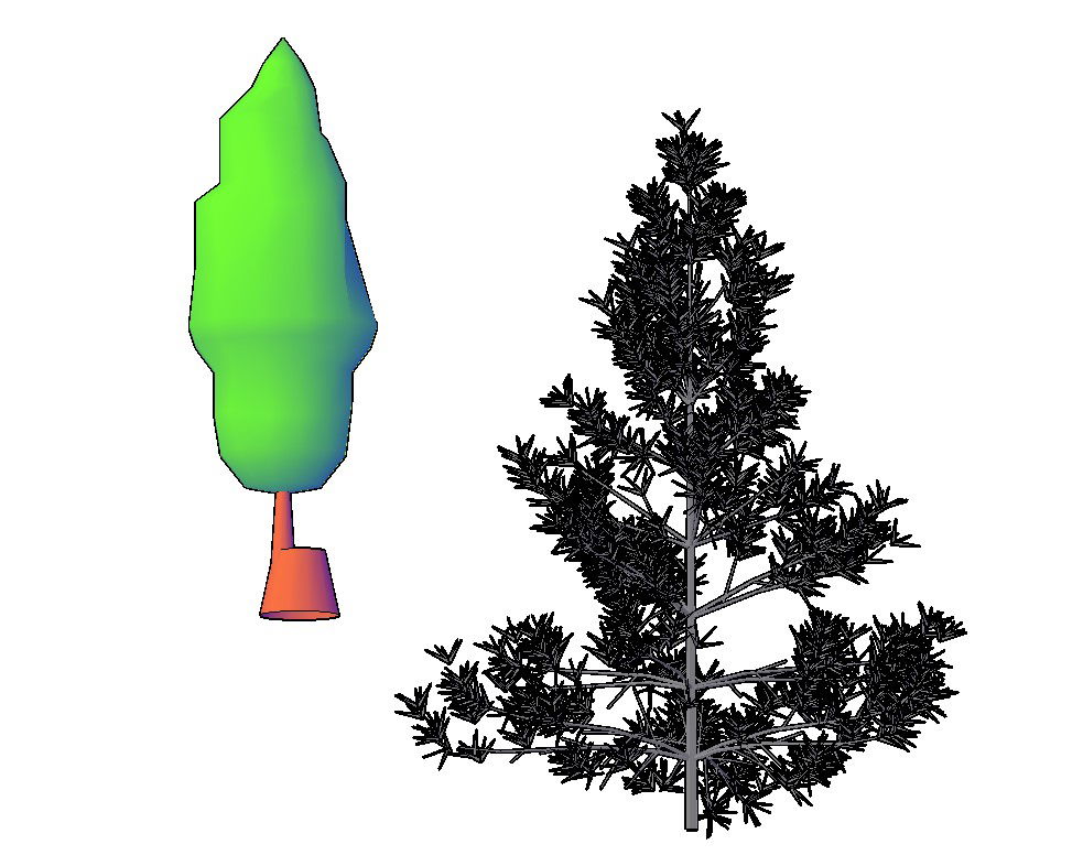 3D CAD Drawing Two Simple Tree Model In AutoCAD File; this is the two tree 3D model in CAD file format. and use it in the 3D DWG file.