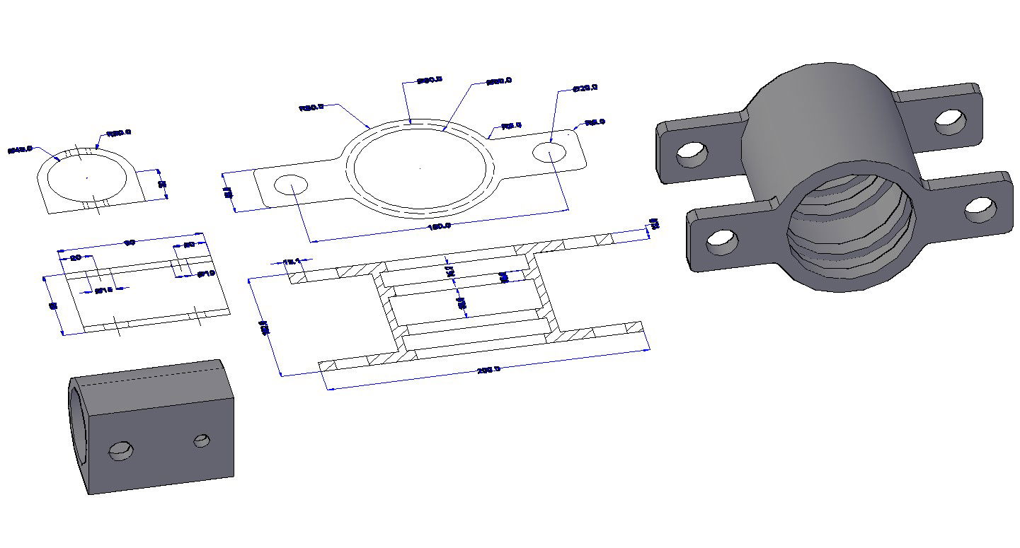 Download Free DWG File of Wall Mount Pipe Clamp Bracket; download free DWG file of 2d and 3d wall mounting pipe bracket design with dimension detail.