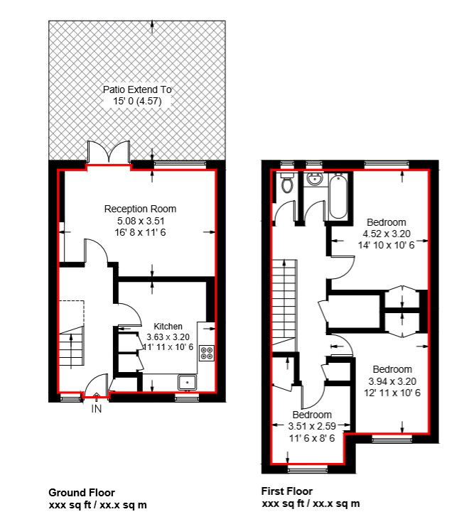 find here ground floor and first-floor plan with 2 bedrooms, sanitary ware detail and all dimension detail mention in footing.