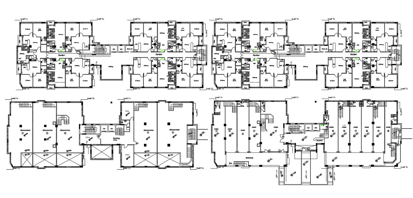 2D CAD Drawing Commercial Floor And Two BHK Apartment Planning AutoCAD File