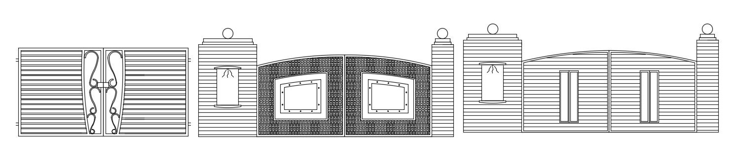 2D Entrance Gate Elevation Layout and Front View Design in CAD File