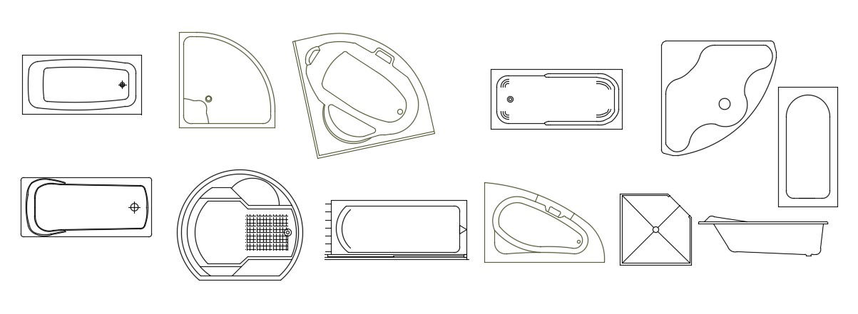2d CAD drawing details of washbasin, water closet, bath-tub, sanitary blocks elevation design AutoCAD file free download.