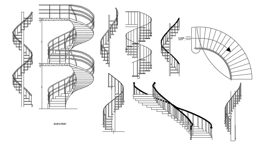 Spiral Shape Stairway Elevation Design Architecture AutoCAD Drawing Free Download