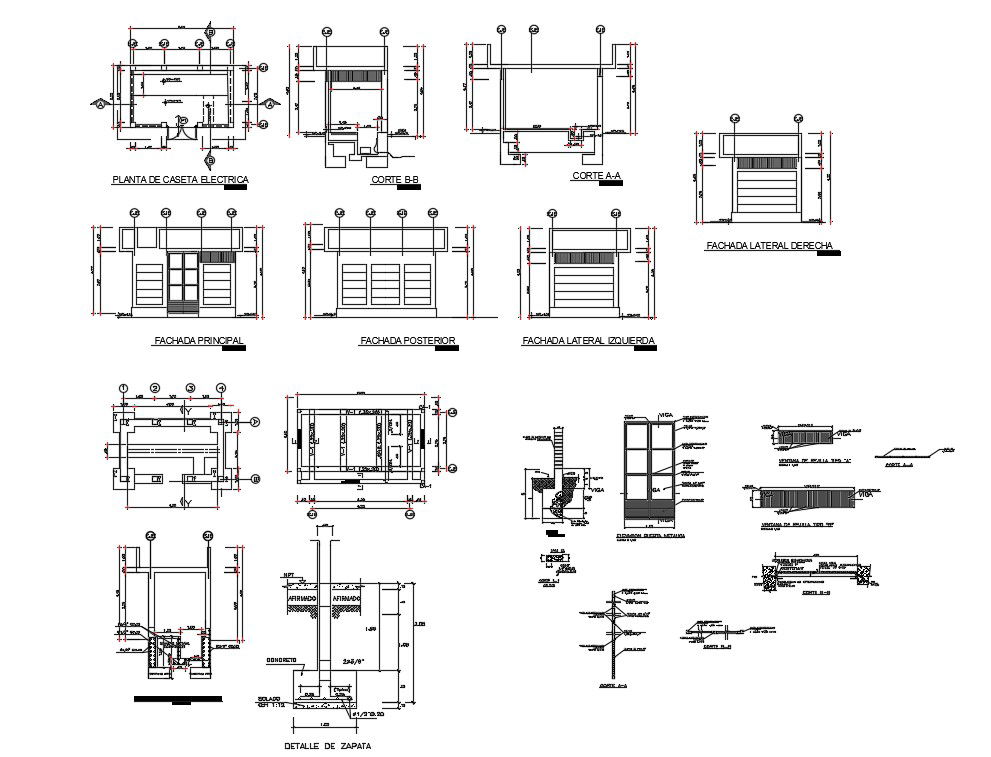 AutoCAD Drawing Of Doors Elevation And Small Room Design CAD File; this is the CAD File of small room design, big doors window elevation, some details of the foundation, texting details centerline in the elevation , working drawing of the small rooms and much more other details, its a DWG file format.