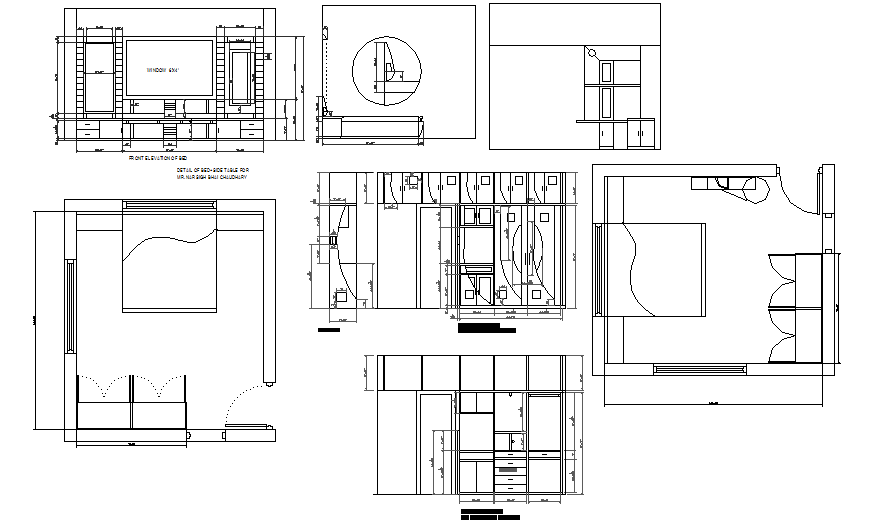 Detail for Bed + side Table Design, & ward robe & Dressing unit & T.V unit detail.