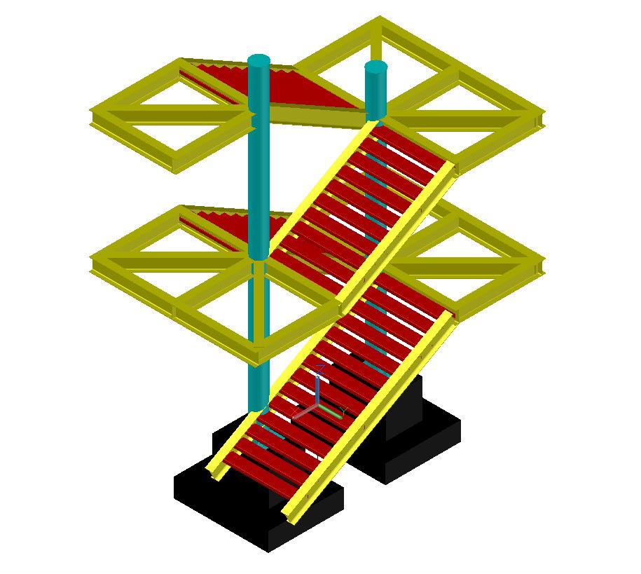3D Model Of Staircase Design AutoCAD Blocks; download free DWG file of staircase case model which is made in iron and wooden steps isometric elevation design.