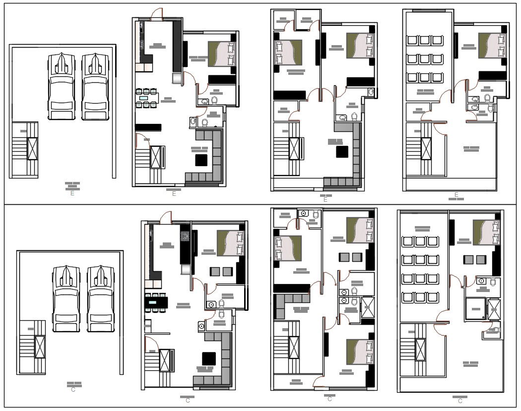 Architecture House Plans With Home Theater AutoCAD File; download AutoCAD File of architecture house plan with home theatre CAD drawing shows 2 different option 4 BHK and 5 Bhk House Plan with furniture layout, ground floor parking lot and measurement details. this is the 3 storey luxurious house project CAD drawing.