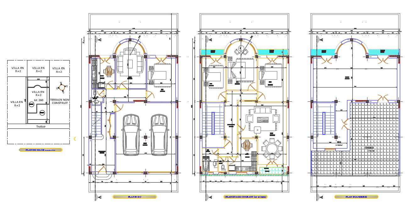 Architecture Multi-Family House Floor Layout Plan AutoCAD File; The architecture multi-family house floor layout plan CAD drawing show furniture layout includes bedrooms, kitchen, dining area, open terrace area, and car parking porch area. download DWG file of multifamily house furniture layout plan AutoCAD File.
