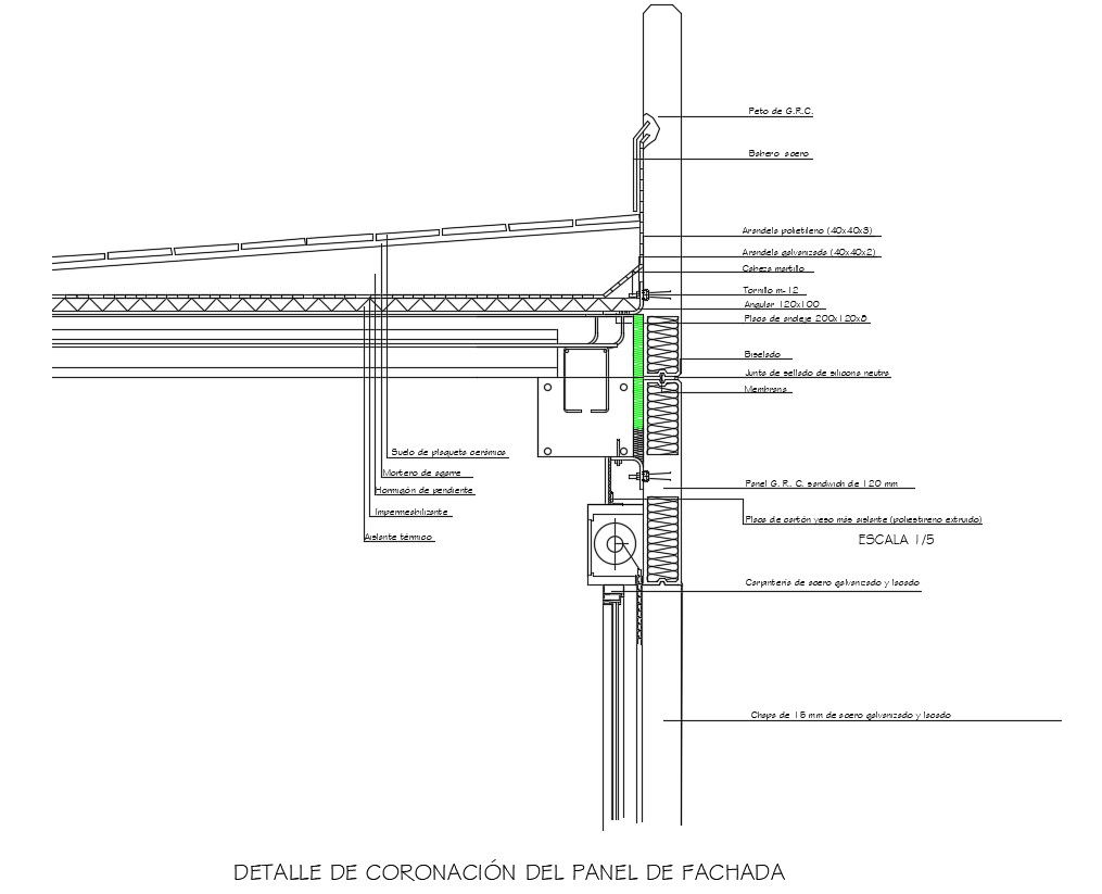 Facade Panel Coronation Section Drawing With Description AutoCAD File; download free DWG file of wall panel coronation section drawing dor curtain wall installation design.