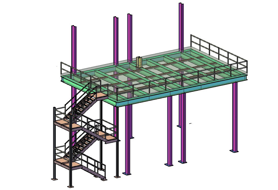 Free Download 3D CAD Drawing Of MS Temporary Structure Design AutoCAD File; this is the simple 3D drawing of stairs, floor and many columns, its a temporary structure drawing with basic rendered and peripheral railing design, its 3D DWG file format.